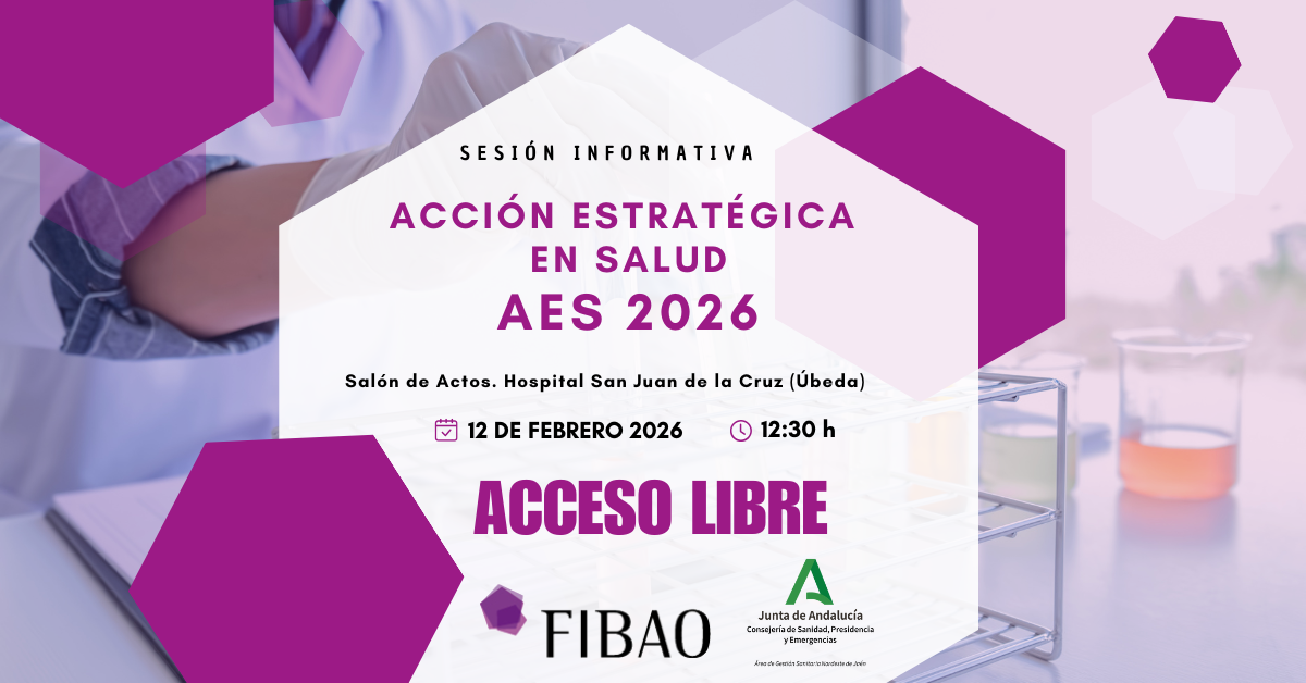 La Fundación para la Investigación Biosanitaria de Andalucía Oriental - Alejandro Otero (FIBAO) organiza la Sesión Informativa de la AES 2026 de forma presencial en el Salón de Actos del Hospital San Juan de la Cruz (Úbeda) el 12 de febrero de 2026 a las 12:30h.