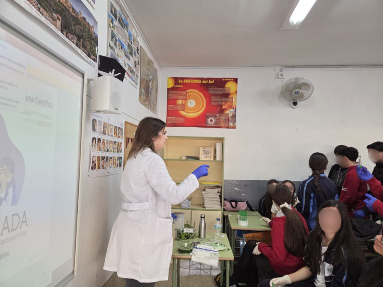 El 23 de febrero tuvo lugar en el Colegio Caja Granada la actividad "Experimenta como una científica (Ciencia con las manos, no con diapositivas)", impartida por Sara Moreno San Juan, María José Muñoz Domene y Paula Sánchez Uceta, integrantes de las Plataformas Tecnológicas del ibs.GRANADA. La sesión estuvo dirigida al alumnado de 4º de ESO y se centró en mostrar el trabajo científico desde una perspectiva práctica y participativa.